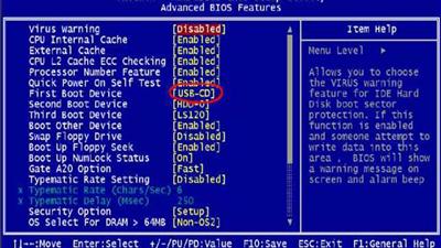 o سنجعل وحدة الأسطوانات المدمجة علي رأس القائمة لكي يبدأ الحاسب بالبحث عن نظام النوافذ في الأسطوانة المدمجة أولا.