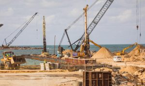 وتم الانتهاء من تنفيذ رصيف بحري “رصيف سيناء” بطول 250 مترًا وساحات التداول به، بالإضافة إلى إتمام الدائرة الجمركية المؤقتة بنسبة 100%، وحاجز الأمواج الشرقي بطول 500 متر. كما تم تنفيذ حاجز الأمواج الغربي بطول 1250 مترًا، وجاري العمل في البوابات والطرق والمباني الإدارية .
