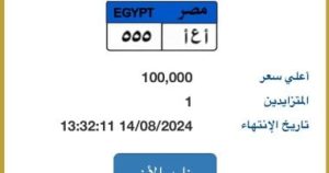 أرخص لوحة.. مزاد على نمرة سيارة “أ ع أ- 555” المميزة قيمتها 100 ألف جنيه
