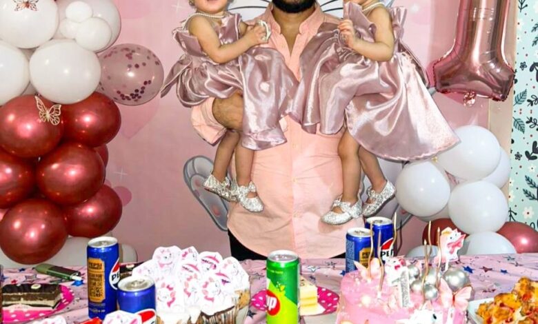 الإعلامية مروة حسن تهنئ مصمم الجرافيك محمود شبيب بتوأمه حور ومِسك في عيد ميلادهن الأوّل