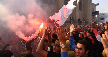 الألتراس يشعلون الشماريخ أمام النادى الأهلى احتفالا بالحكم